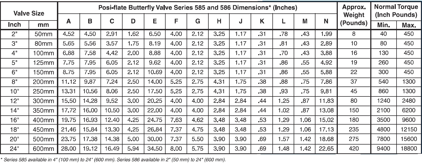 N/A 3 to 24 in80 to 600 mm |